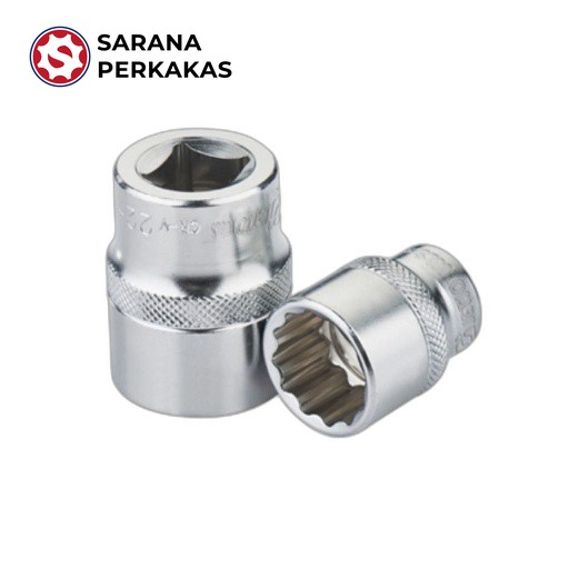 Socket dengan drive 1/2 inci dan desain 12 point untuk fleksibilitas dan kemudahan pemasangan pada berbagai sudut.