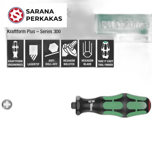 Wera Obeng Plus PH 1x80mm 05008751001 Screwdriver for Phillips Screws
